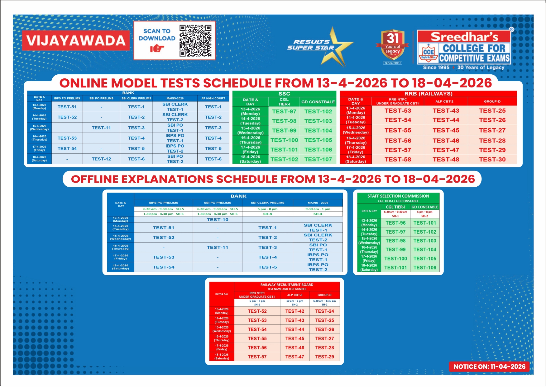 Bank Clerks/POs/LIC batches start on 13-4-2026 (10 am – 1 pm) @ VIJAYAWADA